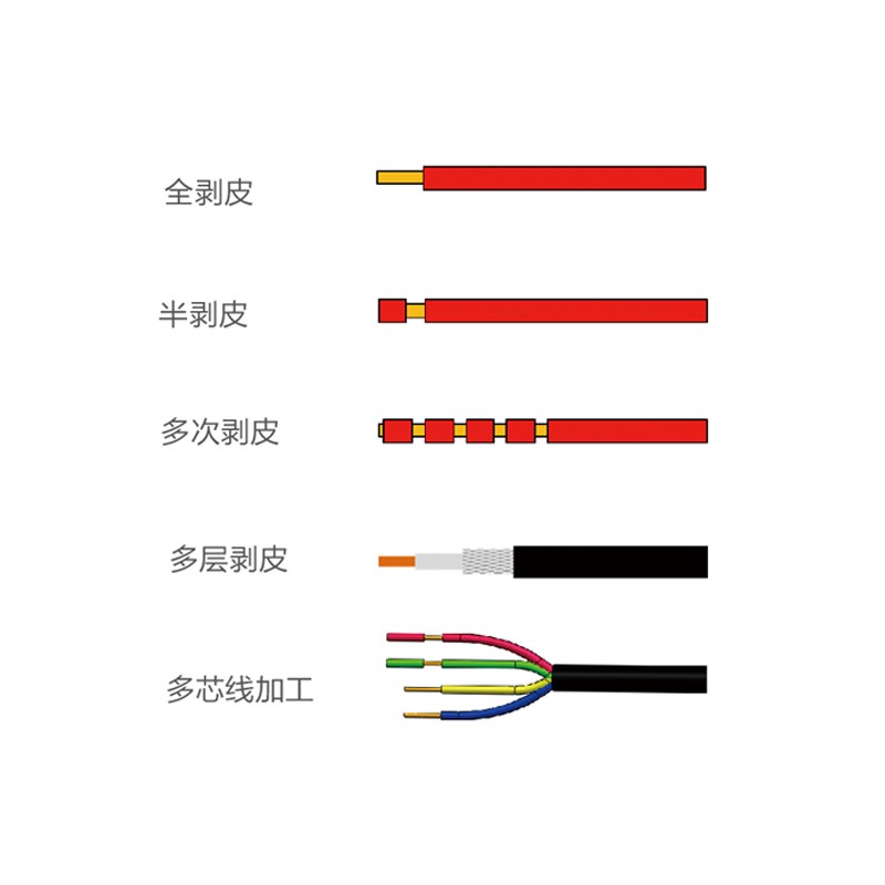 1.高精度旋轉(zhuǎn)剝皮同軸線纜上限可以剝五層;